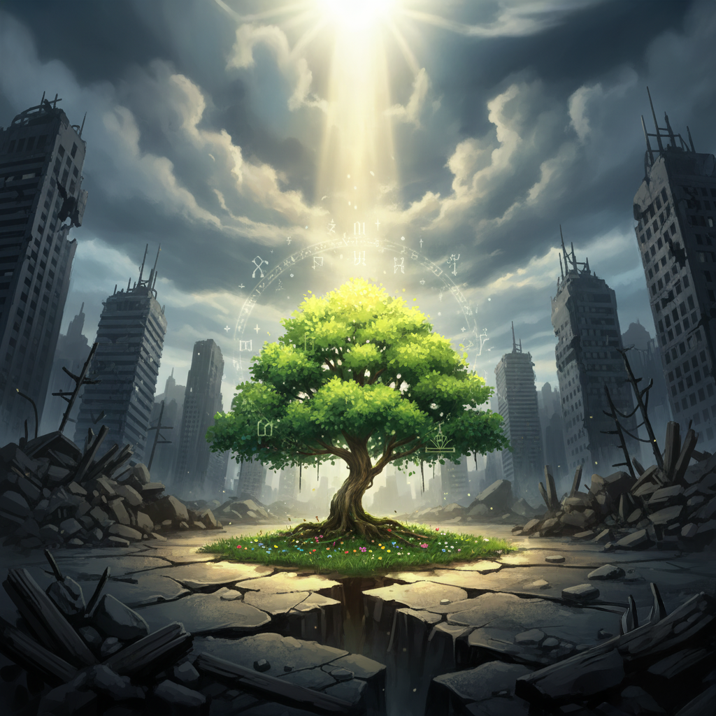 Gdy ta karta pojawia się w grze, wiedz, że Twój Wędrowiec doświadczył iskry odrodzenia. Odrzucił on cynizm i rozpacz, które narzucał zniszczony świat, i doświadczył, że miłość i troska o innych są najsilniejszą siłą transformującą. Prawdziwa zmiana nie wymaga wielkich rewolucji, lecz cierpliwości i wiary w potencjał wzrostu.
